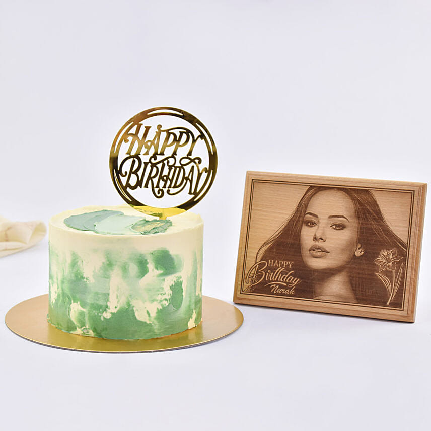 This delightful birthday cake along with a photo frame is the perfect combo for your loved one's birthday.