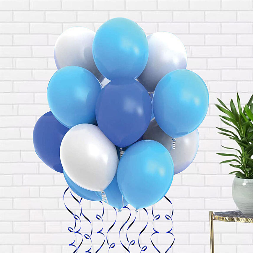 • 10 Balloons - Mix of Dark & Light Blue Balloons With white Latex balloons