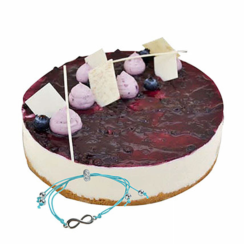 Thi cake is going to be one of the best cakes you have ever tasted! A mouth-watering blueberry cheesecake is perfect for impressing you loved ones or best friends. Indulge your loved ones in this delicious treat for no dessert menu can be completed without a cheesecake. A friendship band is also a part of this gift.