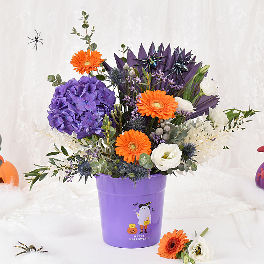 • Beautifully Arranged In a Halloween Lavender Bucket