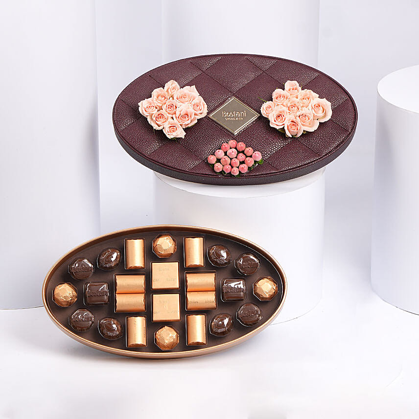 Bostani Leathered Oval Chocolate Maroon Box with Flowers