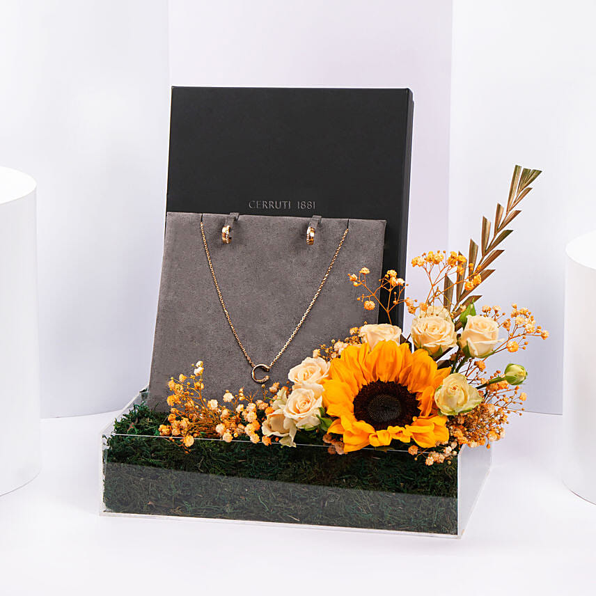 "The Cerruti 1881 Alessia Jewelry Set is designed to capture light and attention. The gold-plated necklace features a graceful chain and a crystal-studded pendant that adds a radiant sparkle. The matching crystal earrings complement the design perfectly, creating a polished and coordinated look suitable for any occasion This set features a gold-plated necklace with a finely crafted crystal-embellished pendant, paired with matching stud earrings that create a graceful, coordinated look. Each piece is designed to reflect light beautifully, adding a soft glow to any outfit from everyday wear to special occasions. Perfect for Birthday and anniversary gifts for her, Valentine’s Day or festive gifting, Special surprises for loved ones or for Fashion-forward women who love statement jewelry"