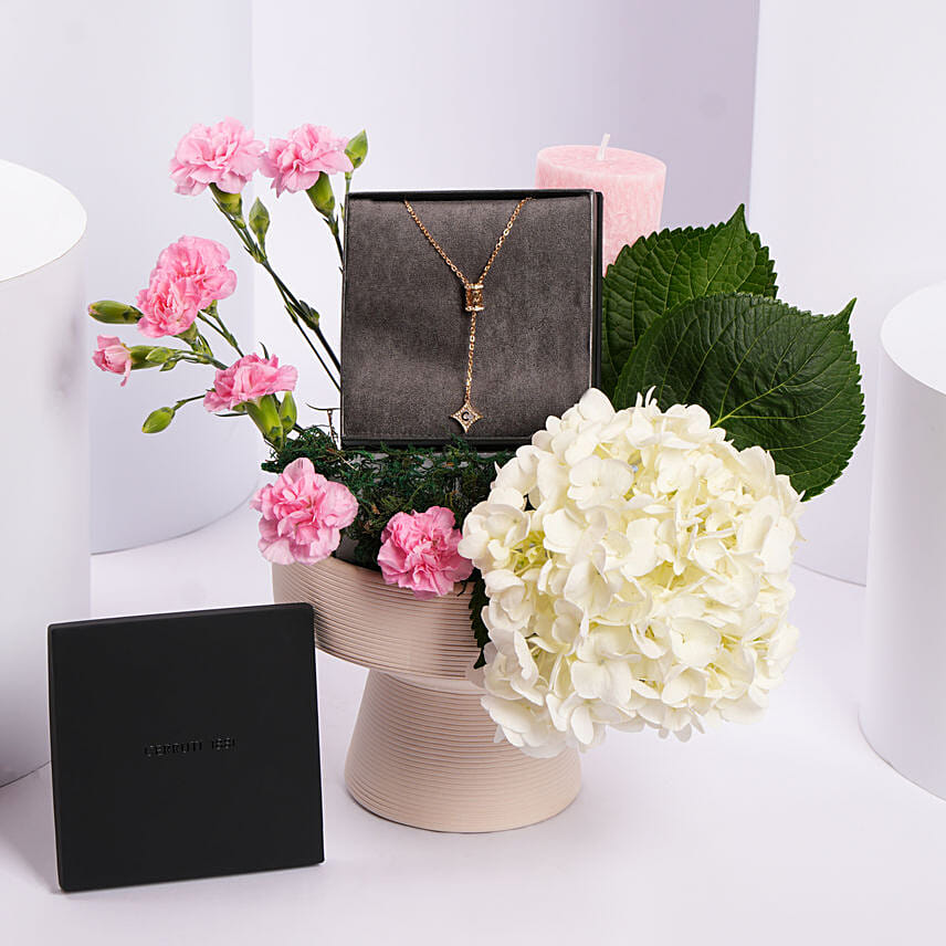 Celebrate life’s meaningful moments with this luxurious Cerruti 1881 Gold Plated Necklace, presented in a stunning floral gift arrangement that instantly elevates the gifting experience. The necklace features a delicate gold-plated chain paired with a chic contemporary pendant, reflecting the premium identity Cerruti 1881 is renowned for. Its versatile design makes it perfect for daily wear or for dressing up elegant evening looks Perfect for Anniversaries, Birthdays, Valentine’s Day, Mother’s Day,Weddings & Bridesmaids Gifts, Corporate and Premium Gifting.