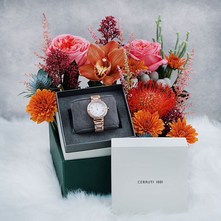 Cerruti 1881 Watch and Flowers Combo For Her