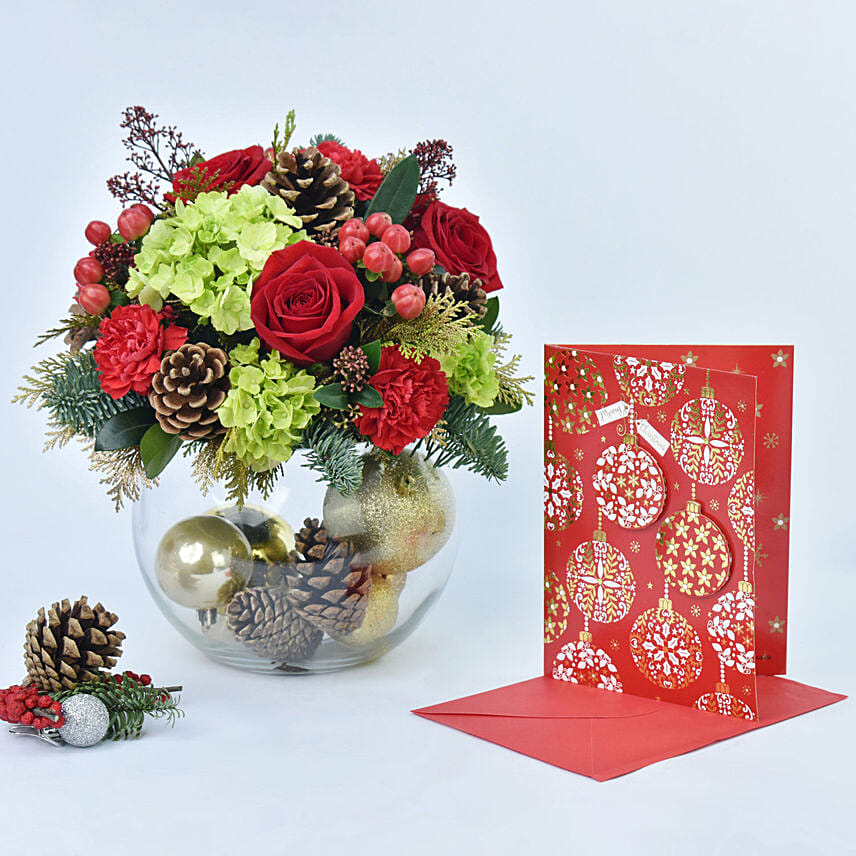 Christmas Sparkles Flower Arrangement with Greeting Card