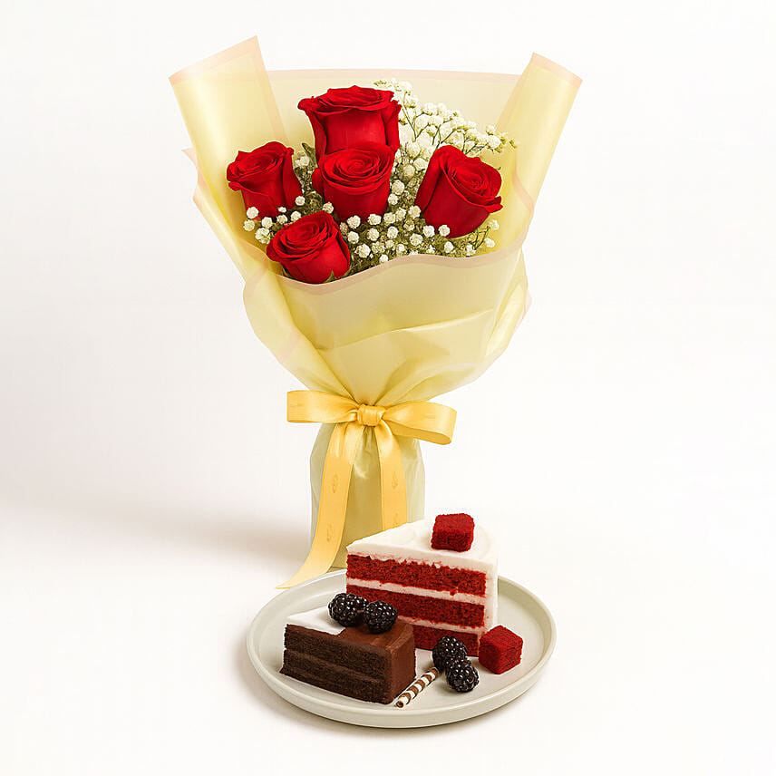 Classic Red Rose Bouquet with Red Velvet And Truffle Slice Combo