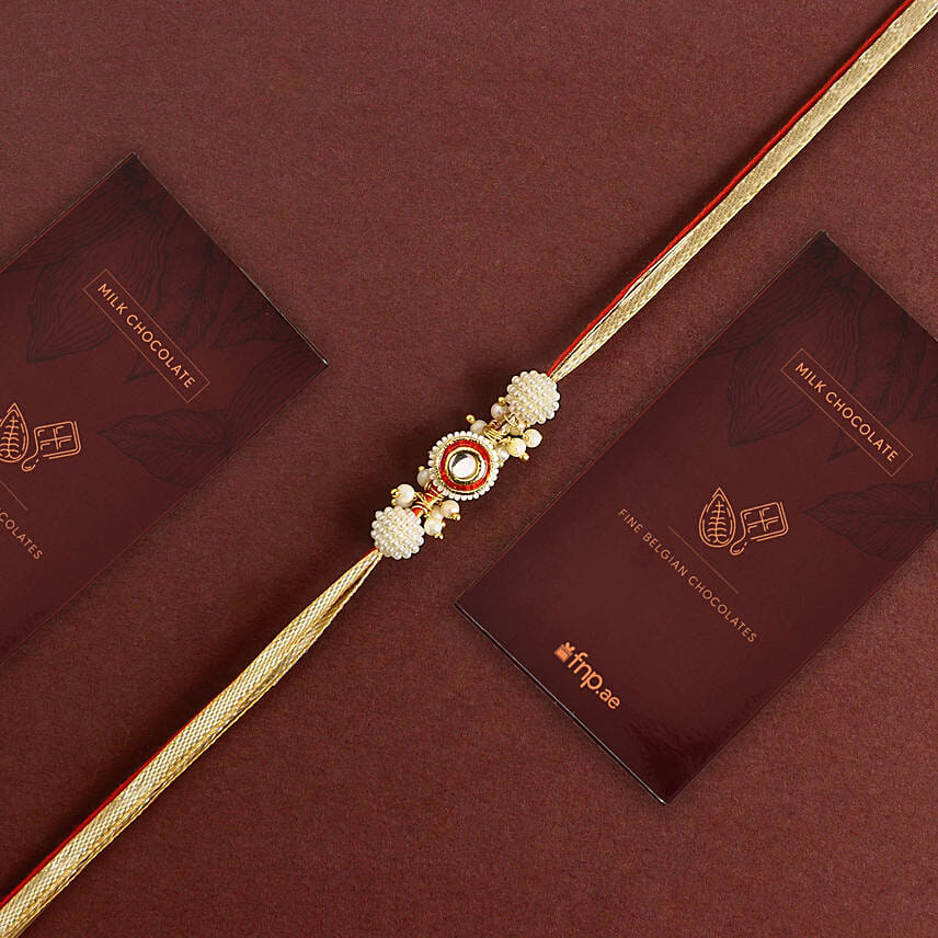 Crimson Majestic Pearl Rakhi N Milk Chocolate Bar