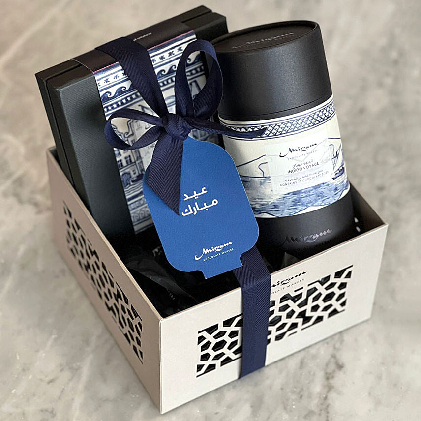 • A gorgeous gift hamper, full of our Milk Chocolate options from our Indigo Voyage Collection: (D, N)