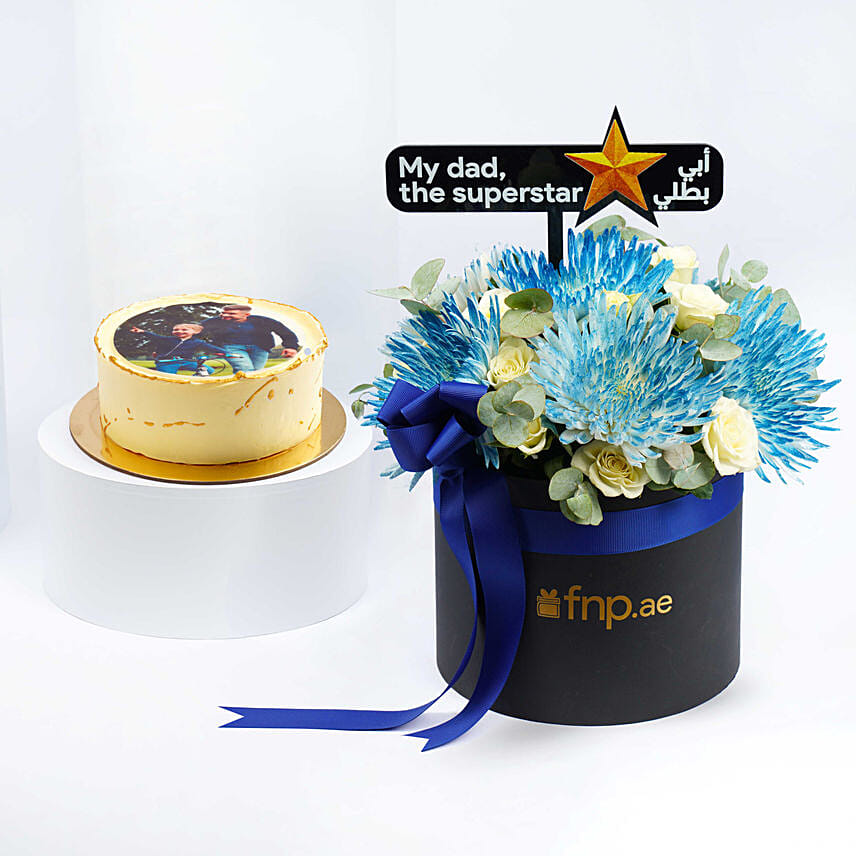 Delicious Chocolate Photo Cake For Dad With Flowers