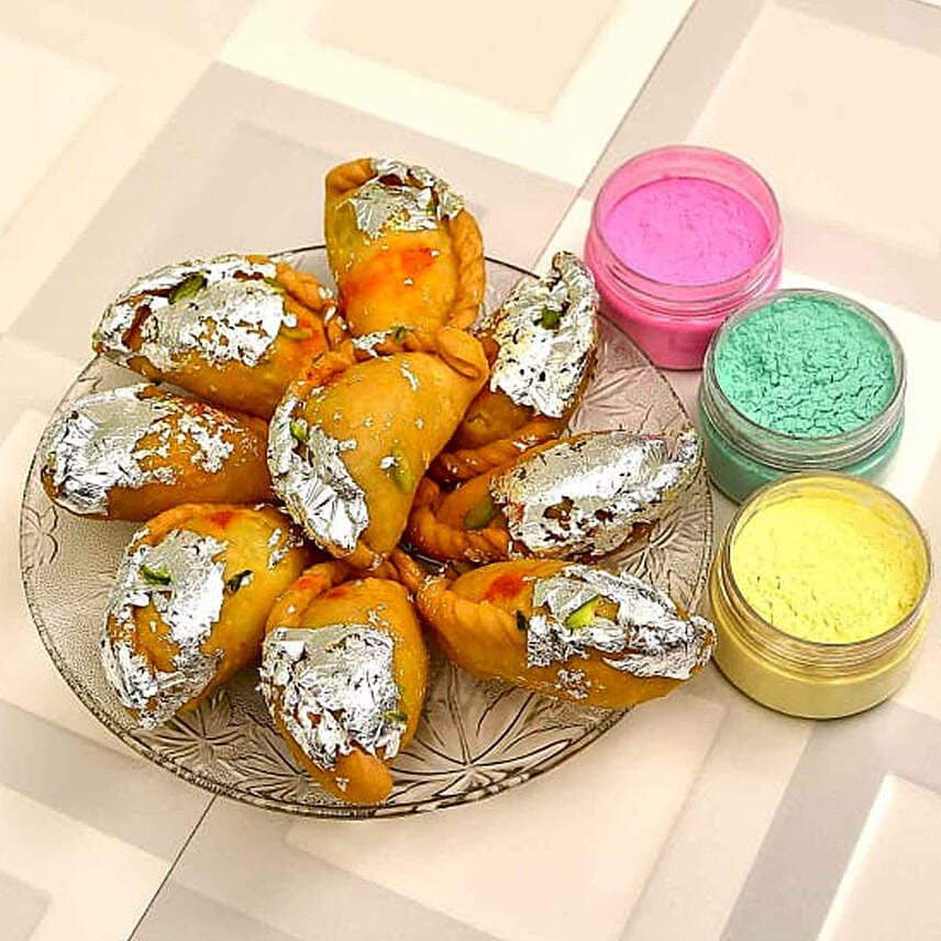 Delicious Gujiya with Holi Colors