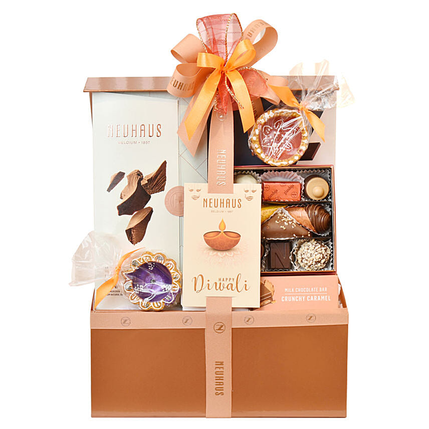 Celebrate Diwali with this luxurious Gift hamper from Neuhaus, the world of premium Belgian chocolate. This Chocolate assortment is perfect for getting into the festive spirit and sharing it with your loved ones. Neuhaus carefully selects every ingredient, ensuring that each praline is of the highest quality and of 100% natural origin. All Neuhaus products are made without GMOs and without palm oil.