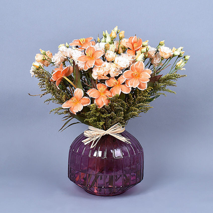 • Arranged Beautifully In Premium Pink Round Glass Vase