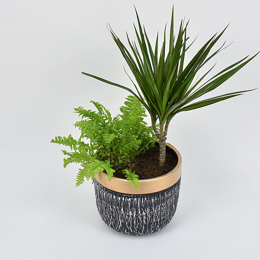 Dracaena & Nephlorepsis Plant In Dual Hues Ceramic Pot