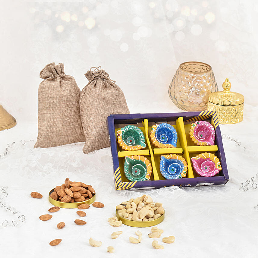 Dryfruits and 6 Diya Combo