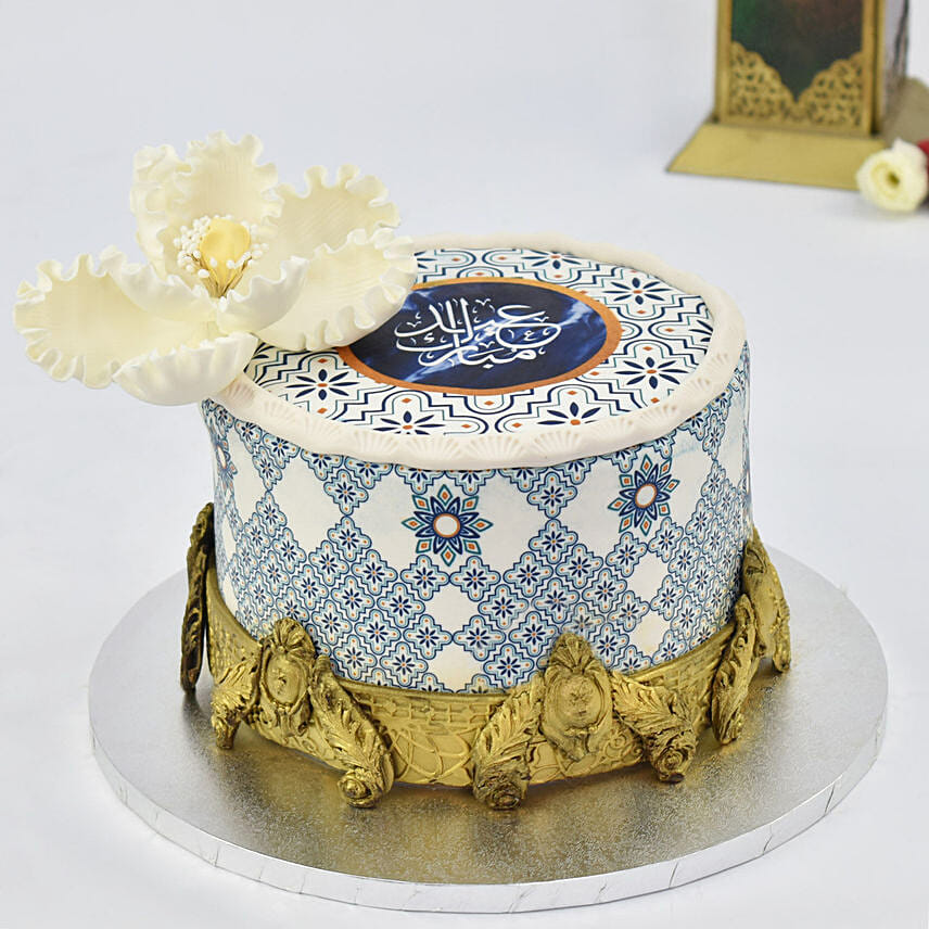 This Eid Send Your Wishes you celebrate with your family with this premium cake. Not Only this looks amazing, it's taste keeps your celebration memories linger longer. This Vanilla Cake Covered with Fondant and Decorated with beautiful edible art work and a beautiful Gum paste Flower and Gold color