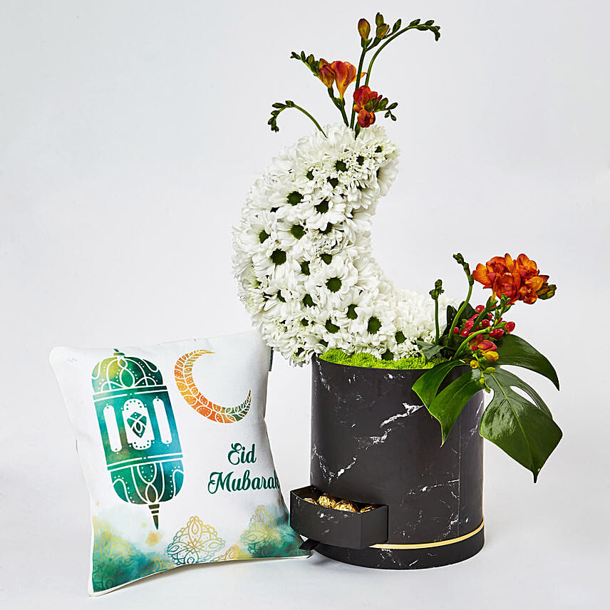 Eid Special Flowers With Cushion N Ferrero Rocher