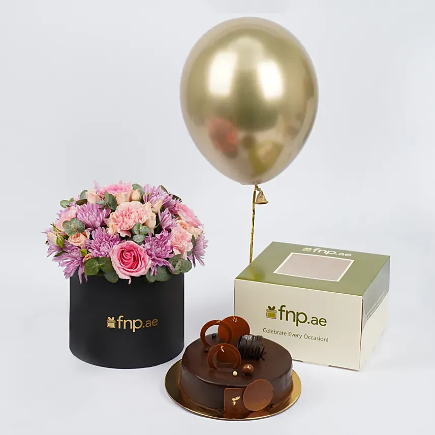Elegant Flower Arrangement And Cake And Balloon Combo