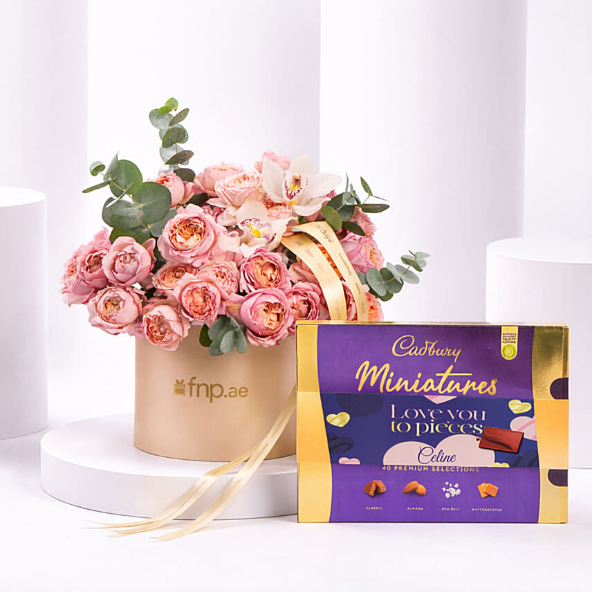 Elegant Peach Rose Bloom Box With Cadbury Chocolates 200g