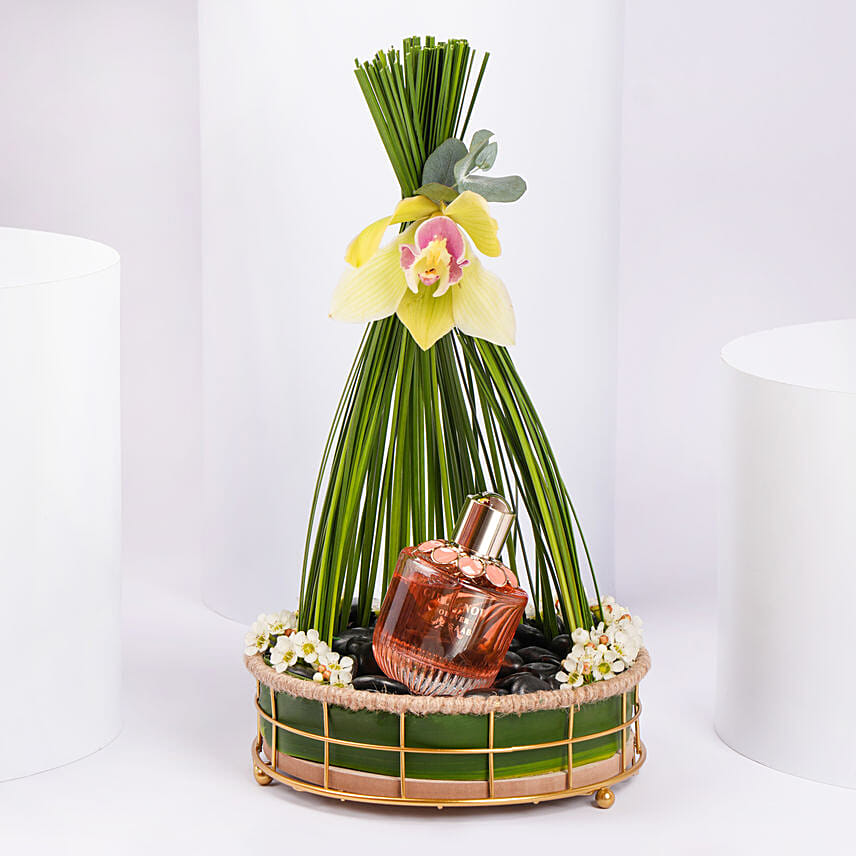 "Surprise someone special with this beautifully styled perfume gift arrangement that pairs the vibrant charm of Elie Saab’s Girl of Now Forever Eau de Parfum (90ml) with a graceful natural setting. Thoughtfully curated to offer both beauty and fragrance, this is a gift that speaks volumes. Perfecr for Birthdays, bridal showers, and anniversaries or Appreciation gifts for best friends, sisters, colleagues, or loved ones"