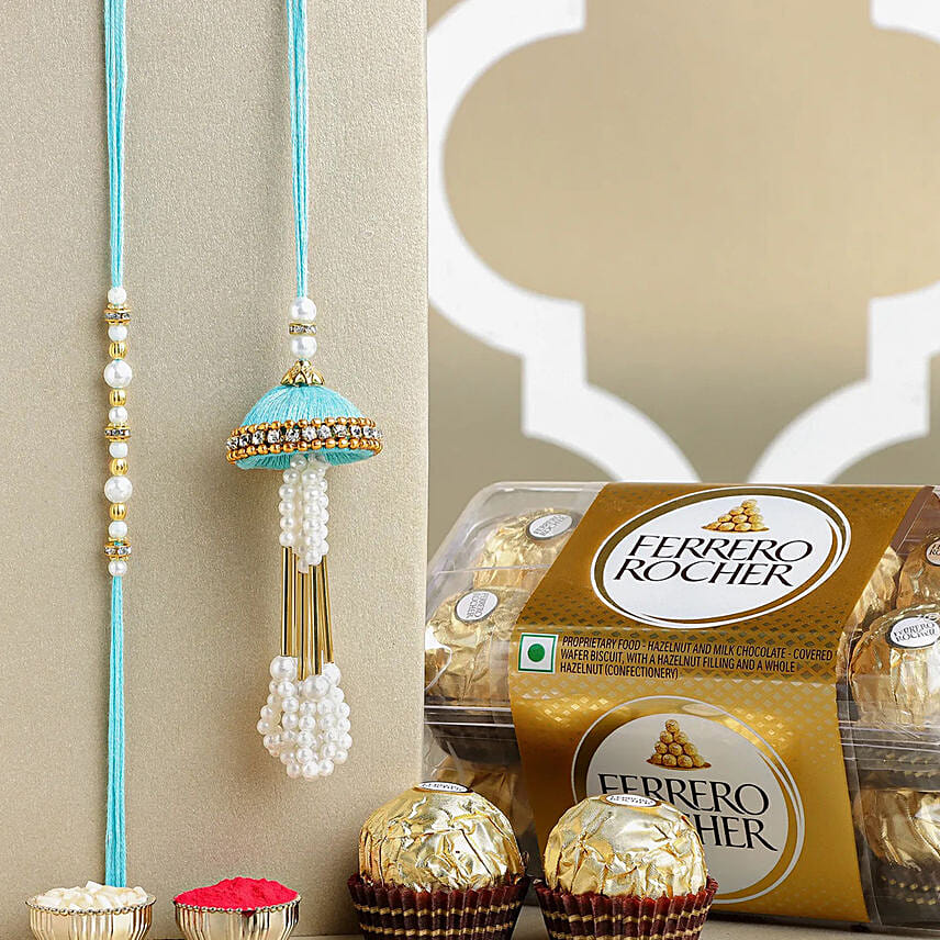 Enchanted Stone Work Lumba Pearl Rakhi Set With Choco Combo