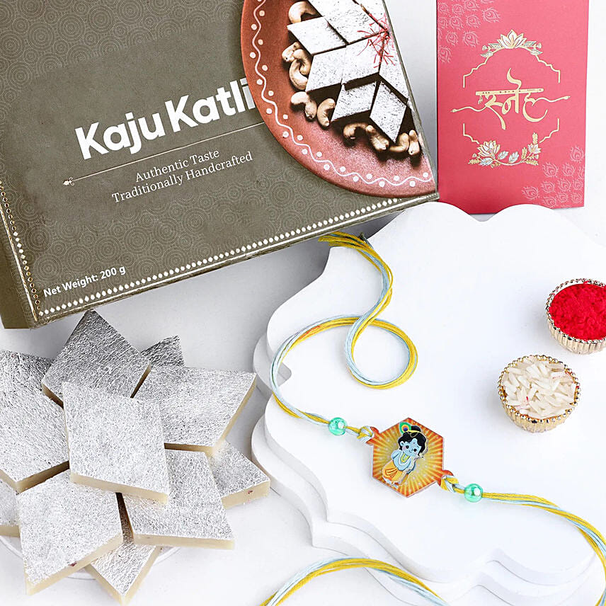 Enchanting Love in 3D Krishna Rakhi N Kaju Katli