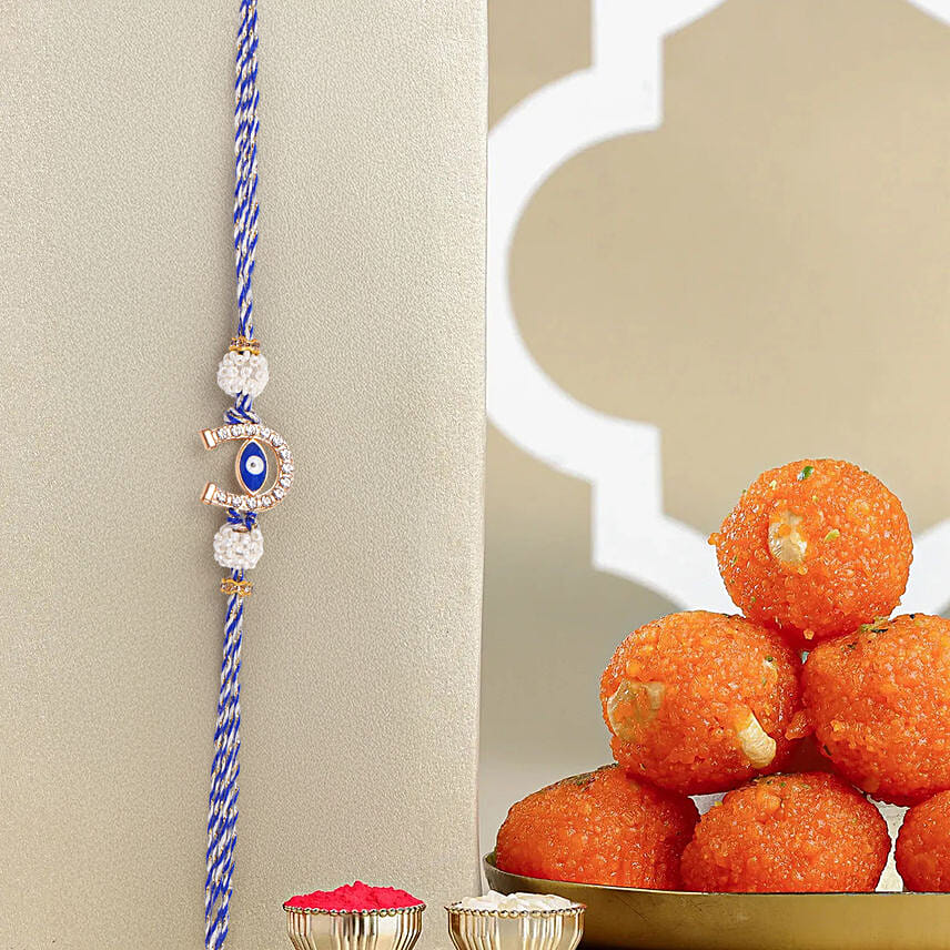 Evil Eye Charm Rakhi And Motichoor Ladoo