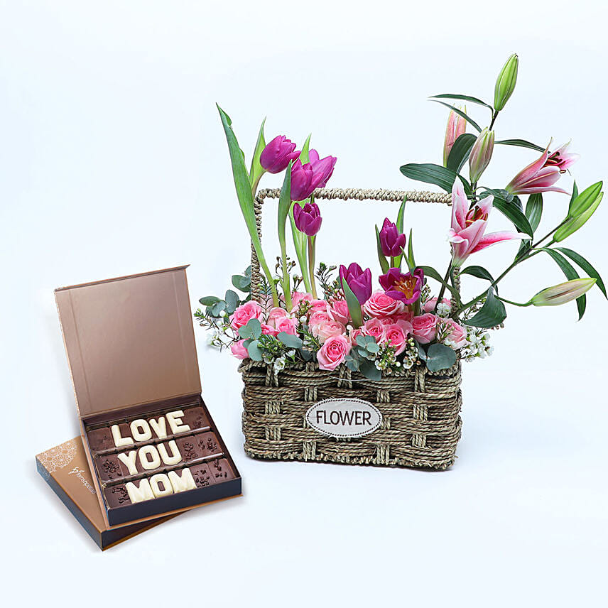 Floral Basket of Love N Care with Chocolates