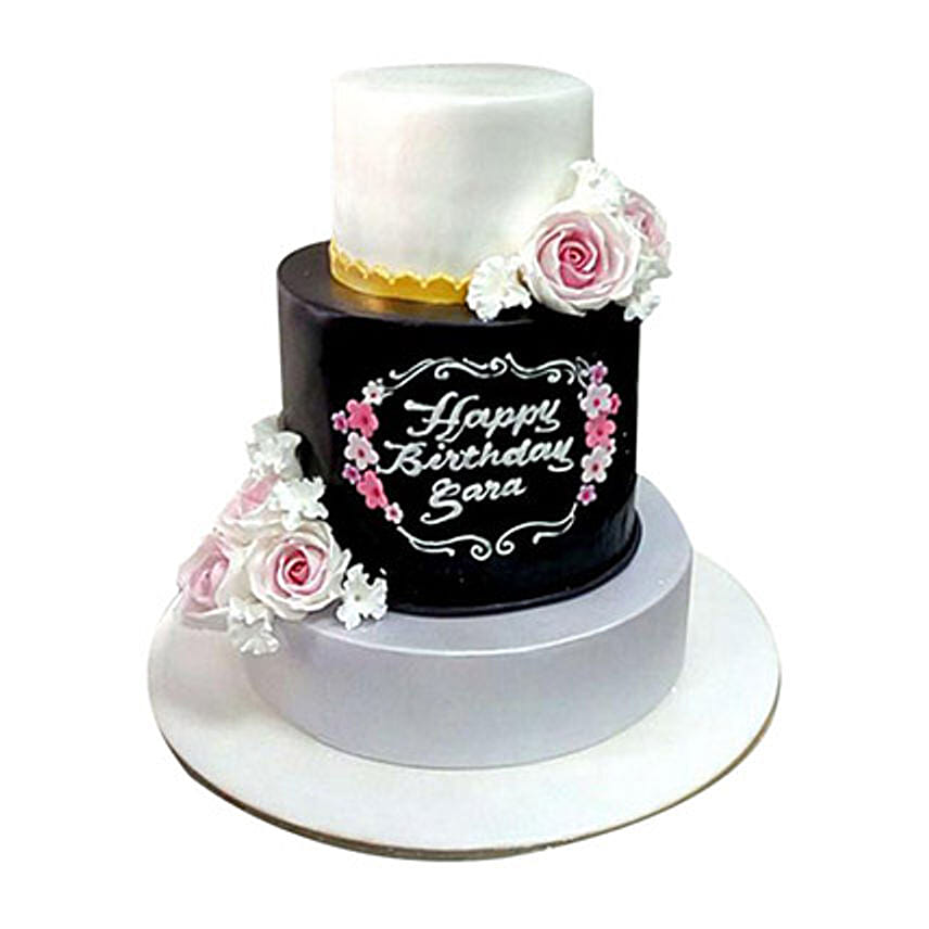 A shining black and white three tier cake is here with the perfect flower works to catch everyone’s attention. Wish on someone’s birthday or on anniversary with this cake and enhance the happiness of a happy moment.