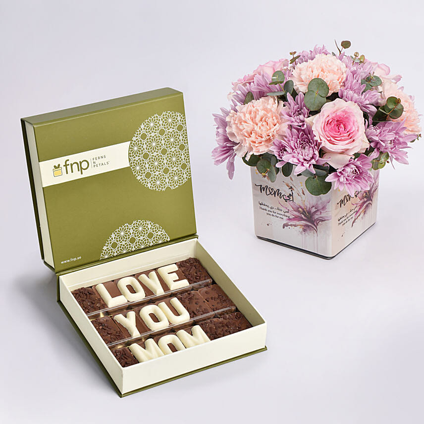 Flowers In Vase With Love You Mom Chocolates