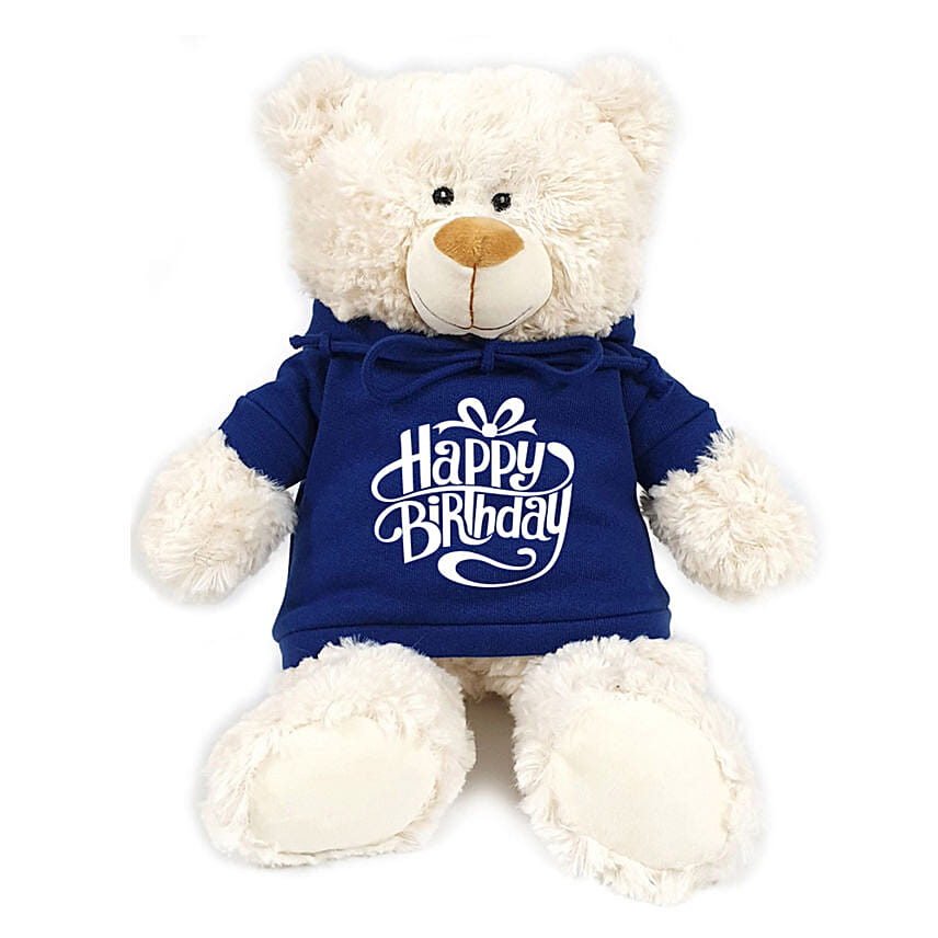 Fluffy Teddy Bear With Blue Birthday Hoodie