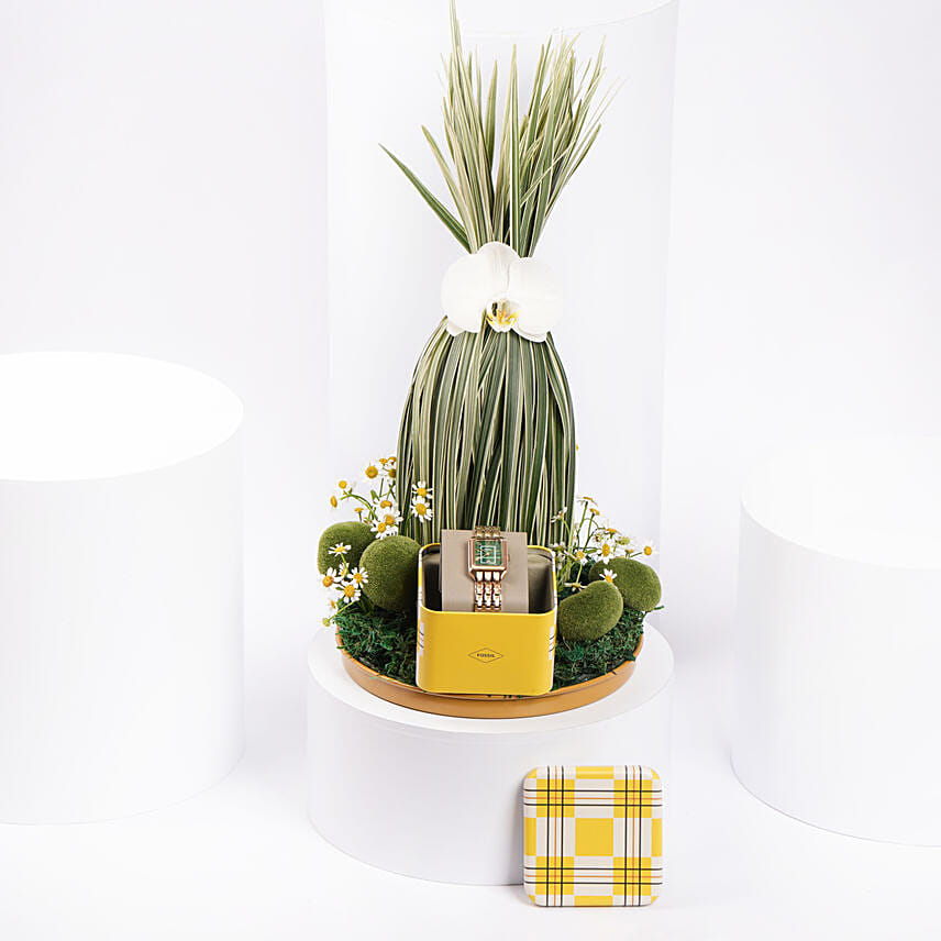 Celebrate sophistication with a touch of nature. This exquisite gift set combines the elegance of a luxury timepiece with a beautifully curated botanical arrangement, making it a perfect choice for someone who appreciates the harmony of natural beauty and refined style.