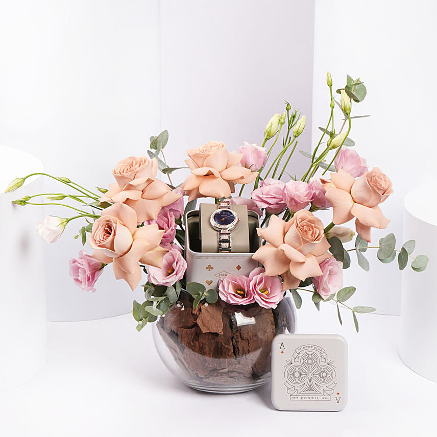 This luxurious gift set combines the refined elegance of a classic timepiece with the soft beauty of pastel flowers. Perfect for someone who appreciates subtle sophistication and charm, it’s a gift that captures the essence of grace and timelessness.