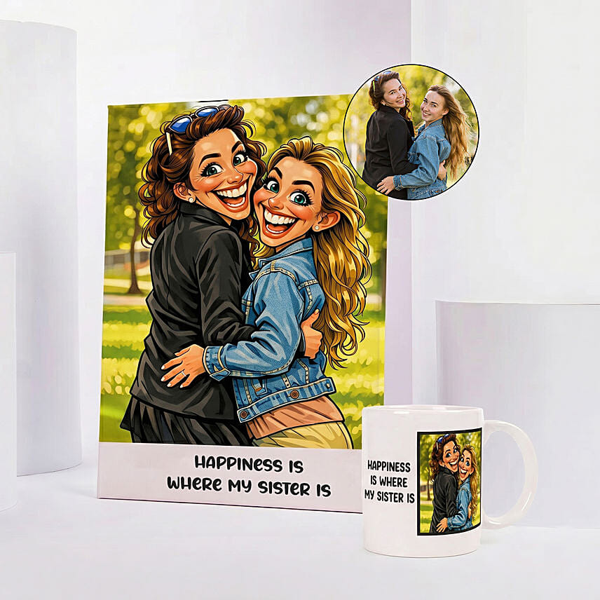 Happiness is Where My Sister Is Caricature and Mug Set