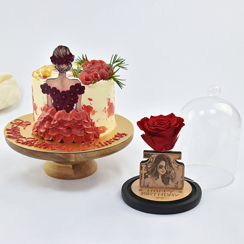 This Tempting Birthday Princess Designer Cake along with the Personalised Forever Rose Dome is the perfect combo for your loved one's birthday.