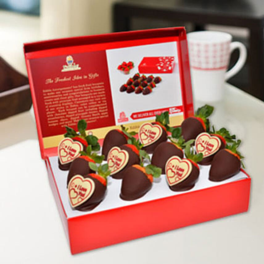 Are you bored of floral bouquets? Try out this exceptional chocolate pack that feature 12 pcs of gourmet chocolate dipped strawberries covered with melt-in-your-mouth semi-sweet chocolate, artful white swizzle, rich chocolate micro drops, and our custom I Love You white chocolate hearts for a personal touch. They are arranged in our signature box for the perfect presentation.