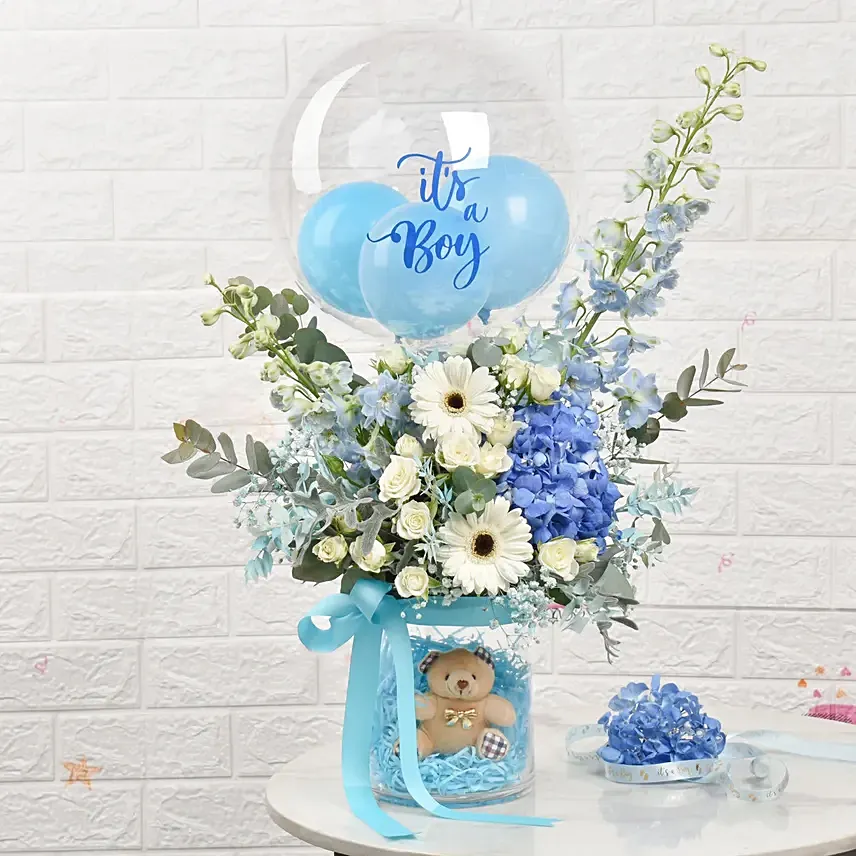 • 1 Transparent Balloon with It’s a Boy Sticker