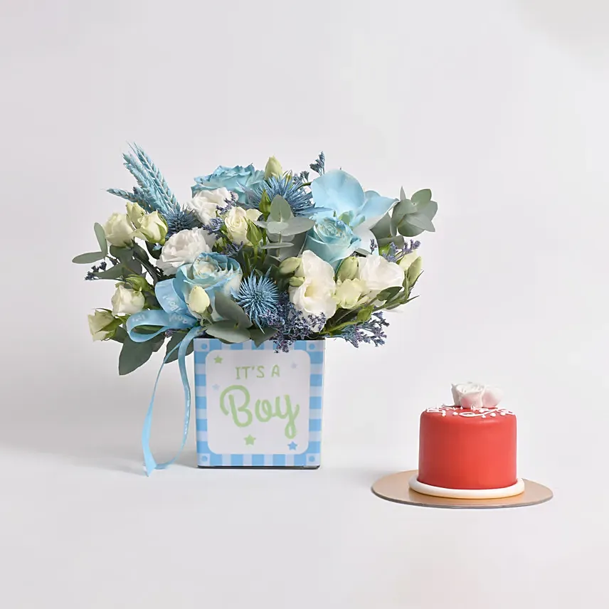 It's a Boy Flowers and Mono Cake