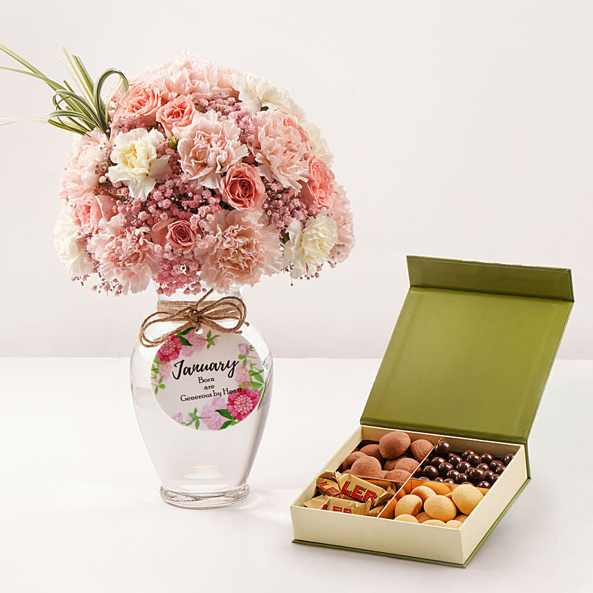 January Birthday Wish Flowers Vase And Treat Box