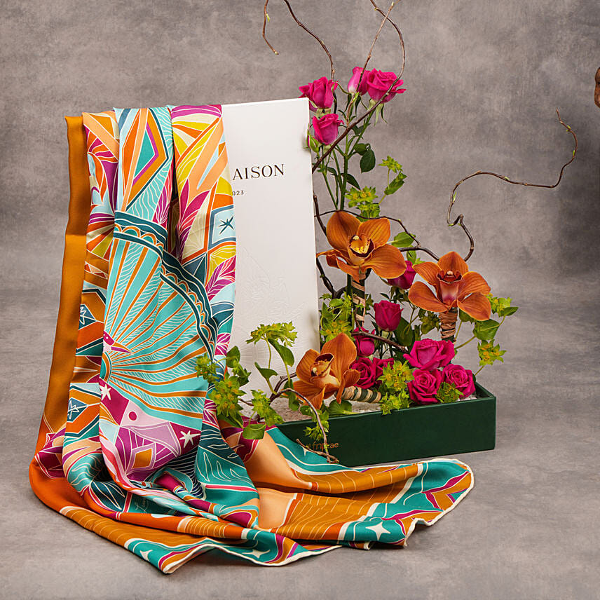 Life Hayeti 100% Silk Scarf By Lumena Maison With Flowers