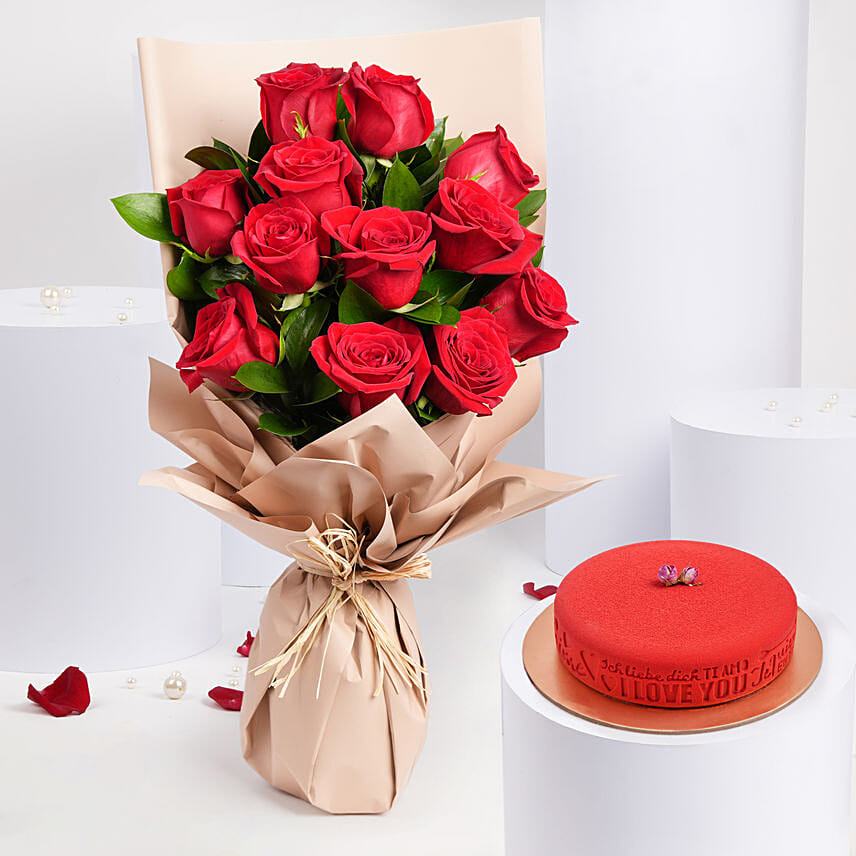 Love Expression 12 Roses Bouquet With Chocolate Cake