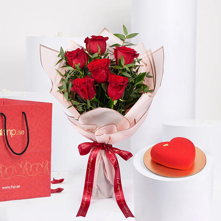 Love Expression Valentine 6 Rose With Cake