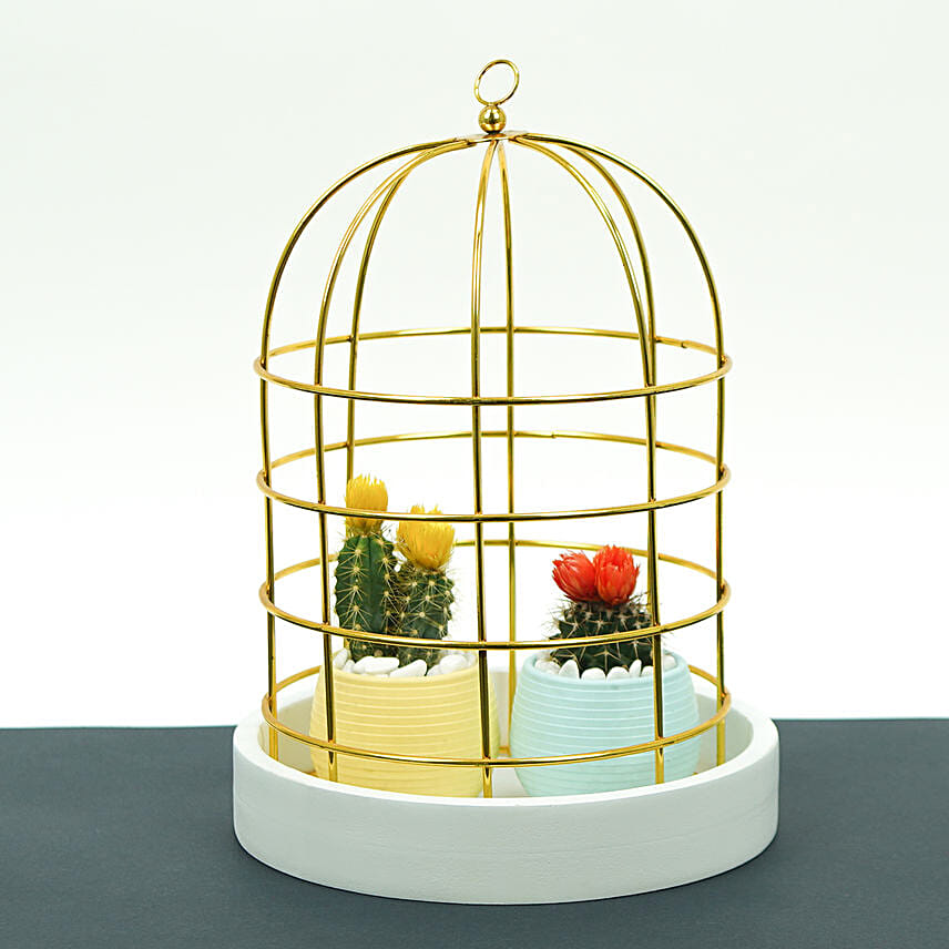 Lovely Flowery Cactus Couple In A Cage