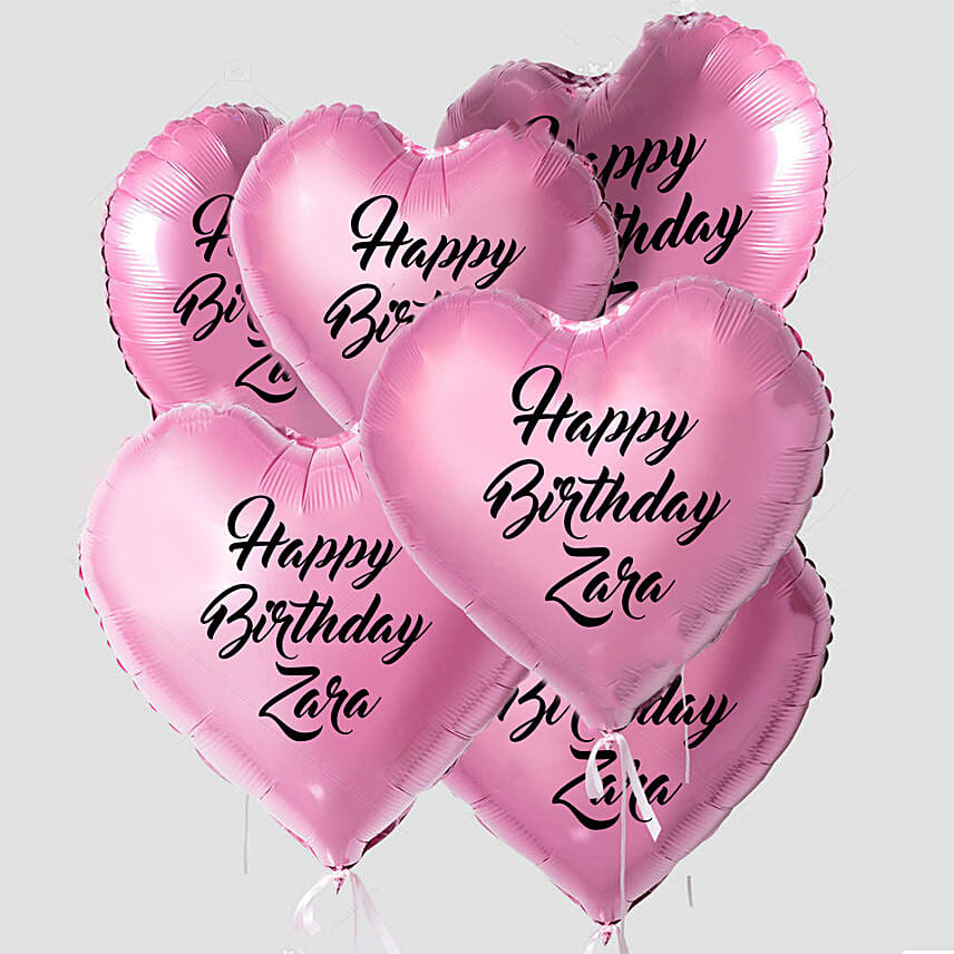 Lovely Heart Shaped Customized Text 6 Pink Balloons