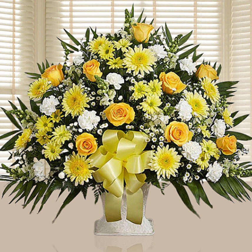 Luxurious Yellow N White Flower Arrangement