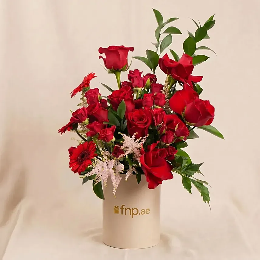 Every petal tells a story — of love, admiration, and timeless elegance. This stunning red arrangement, with its graceful roses and radiant blooms, is more than a bouquet; it’s a heartfelt expression.