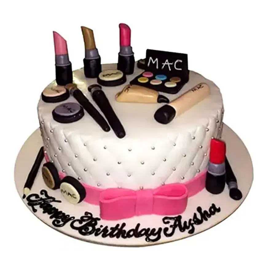 • The fashionista sister, girlfriend, or wife who uses nothing except MAC when it come sot make-up elements would find solace in this mesmerizing cake. Blusher, lipstick, eye shadows, etc. are all prepared with excellence and are adding a glamor quotient to this cake.