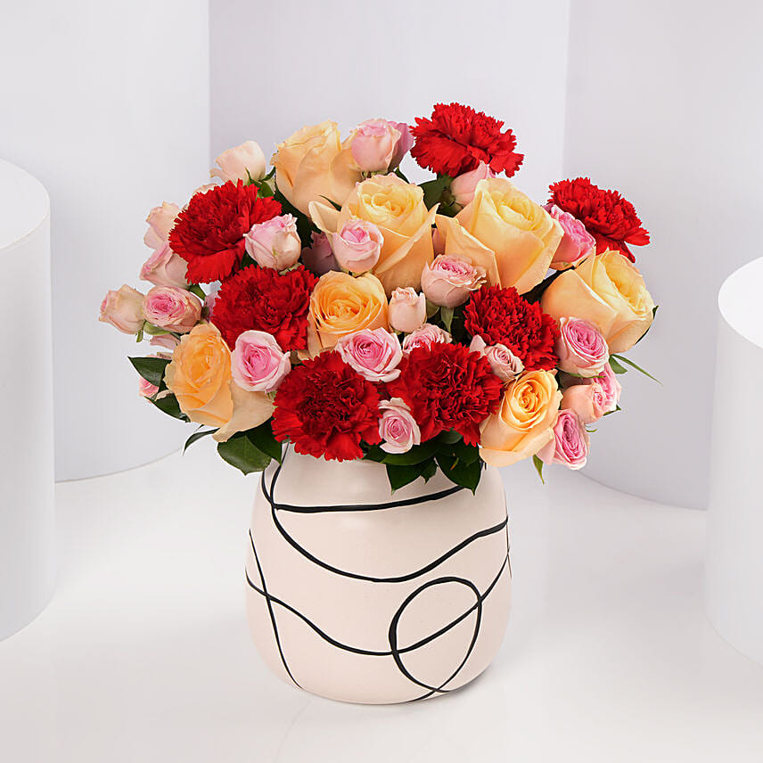 • Elegantly Placed in a Stylish White Vase with Abstract Black Line