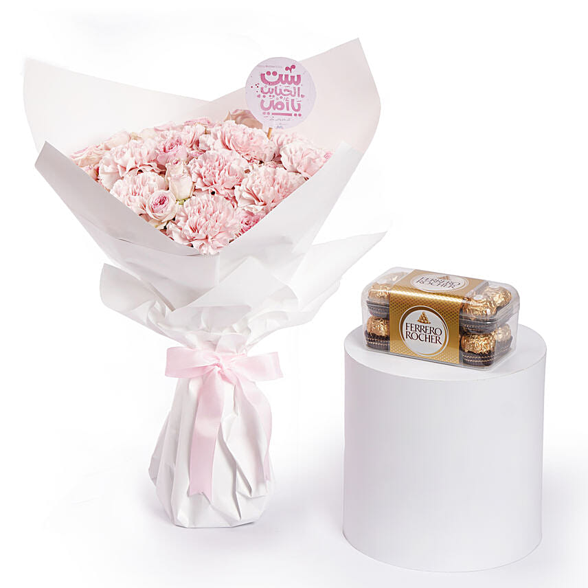 Mothers day Roses and Carnation Bouquet With Ferrero Rocher