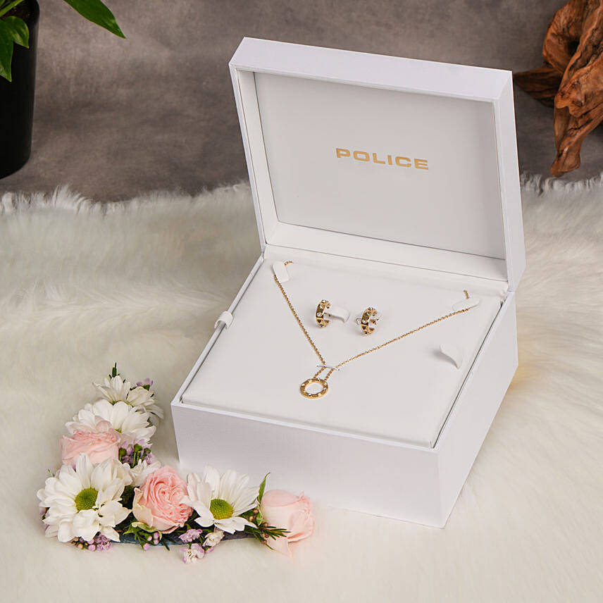 Necklace And Earrings By Police With Flowers