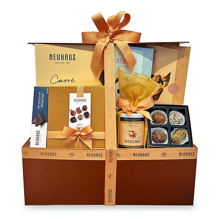 Discover the world of premium Belgian chocolate with this unique,luxurious Gift Hamper.This Large gift Hamper contains a variety of 7 chocolate day essentials.Neuhaus carefully selects every ingredient, ensuring that each Neuhaus praline is of the highest quality and of 100% natural origin. All Neuhaus products are made without GMOs and without palm oil.